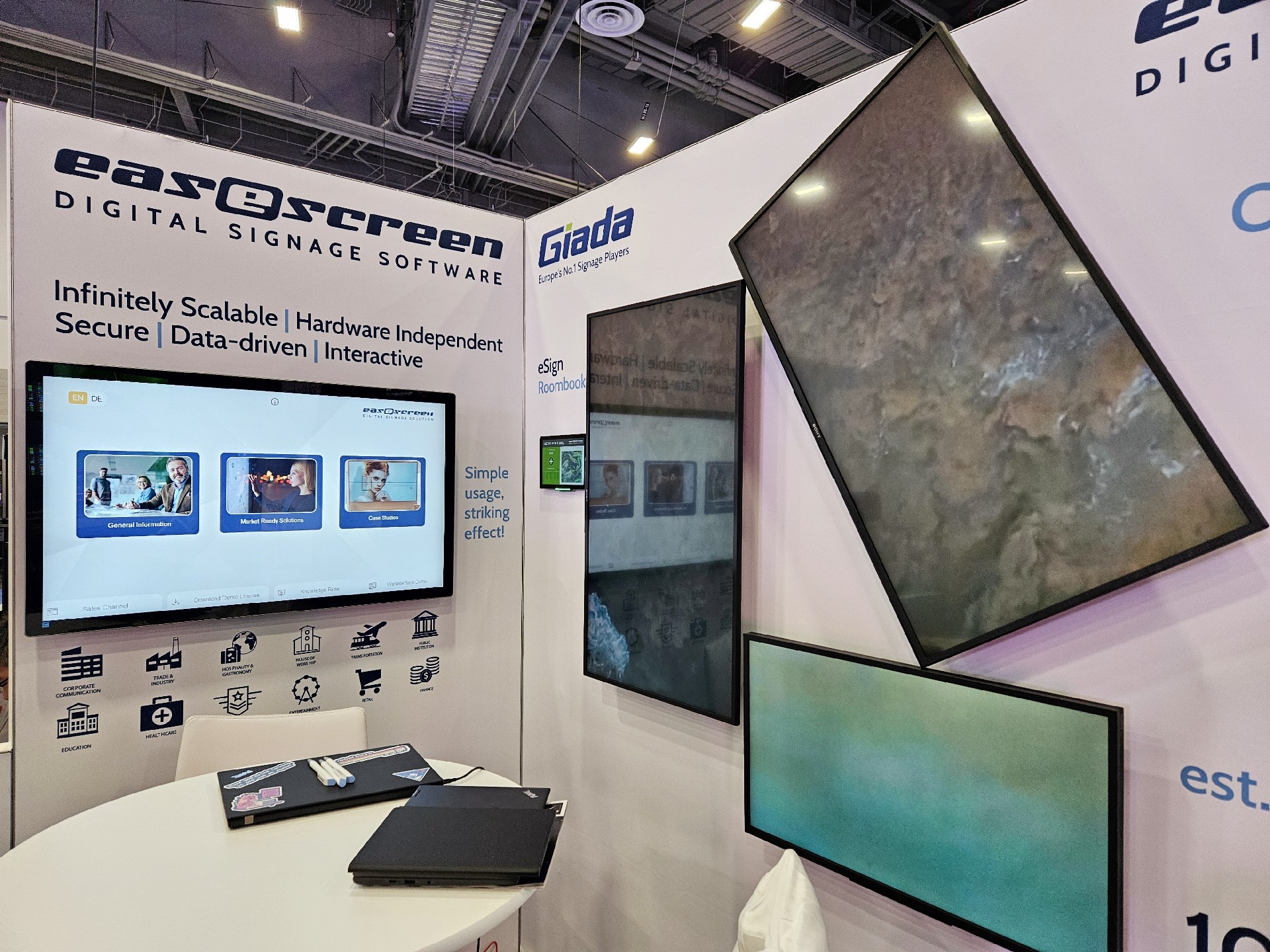 凯发官网科技Giada作为全球数字标牌领域的领导品牌,产品应用范围涵盖全球大型连锁店,购物中心,学校,医疗机构,企业办公室等。本次展会,凯发官网科技牵手合作伙伴easescreen,展示一系列创新数字标牌解决方案,带来强势产品及最新产品,现场收获超高人气。