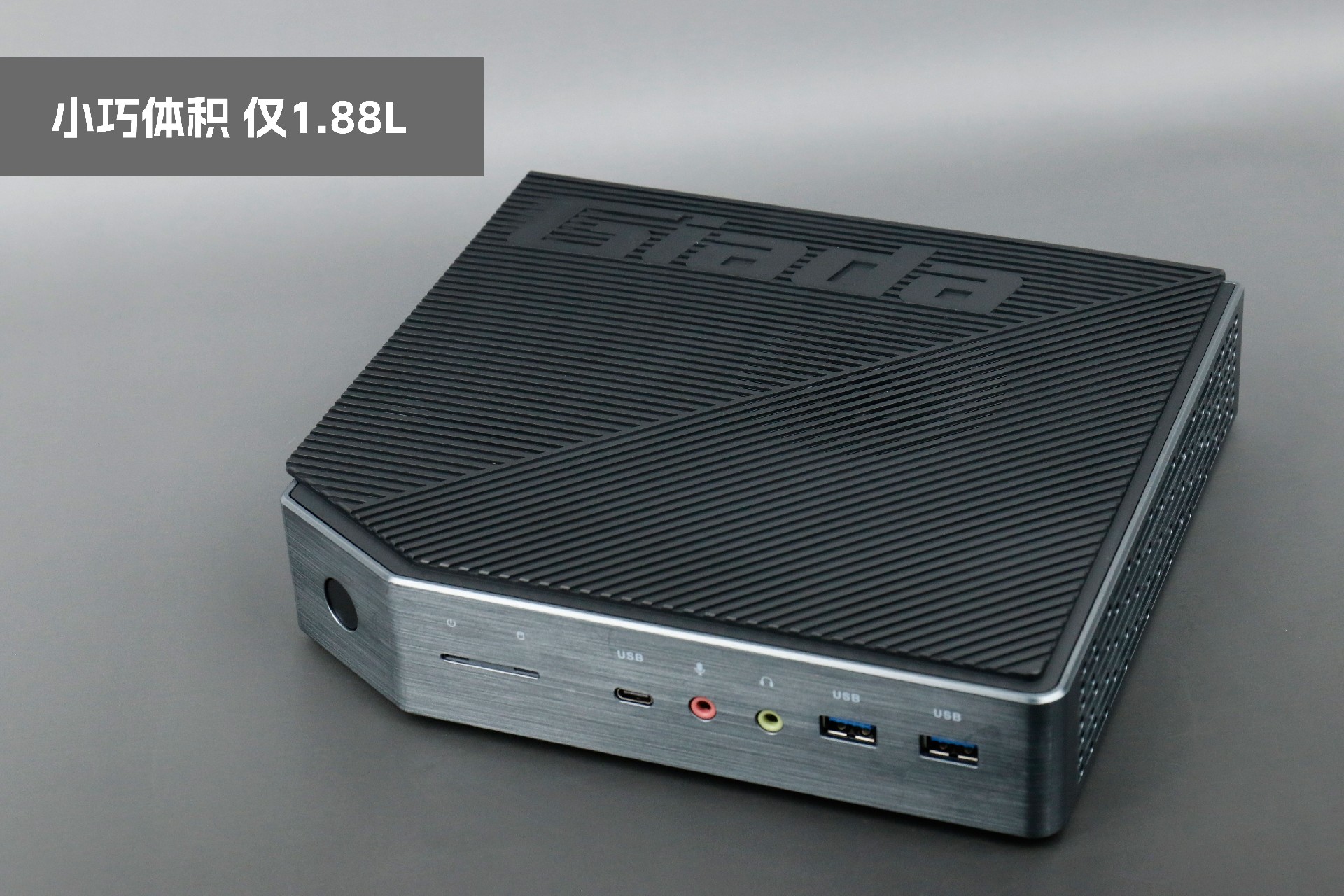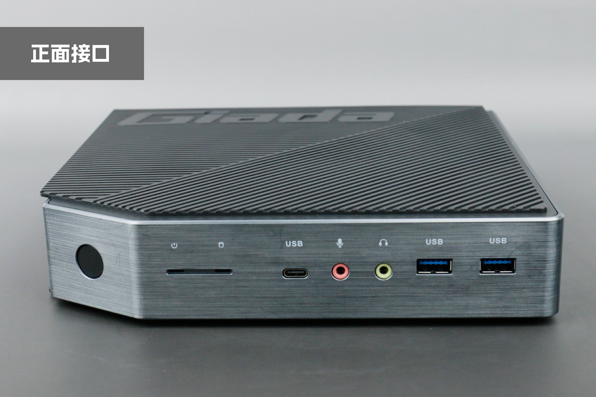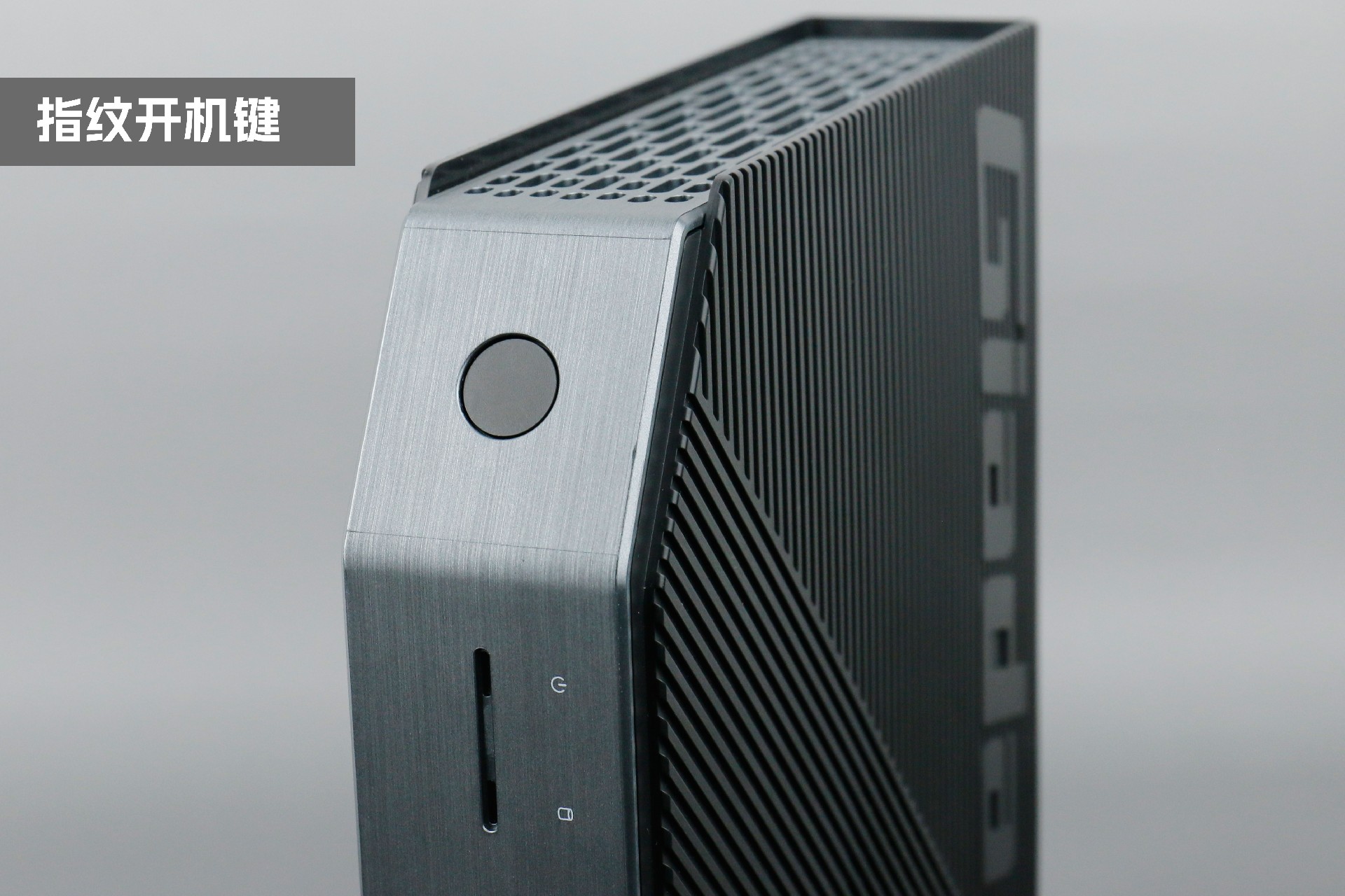 打开凯发官网桌面云终端Y-BOX P3,你会发现它的结构并不是常见的四方体设计,而是在转角处好似被切割开一个角,切割出来的面积为指纹识别开机键。它的外观为优雅的银灰配色,机身正面厚重感十足,顶部依然沿用黑色哑光栅格并延伸至整机背面,磨砂塑胶材质壳,印刻凯发官网Giada品牌名;其他三面则为银灰色,两侧是蜂窝式通风口设计。