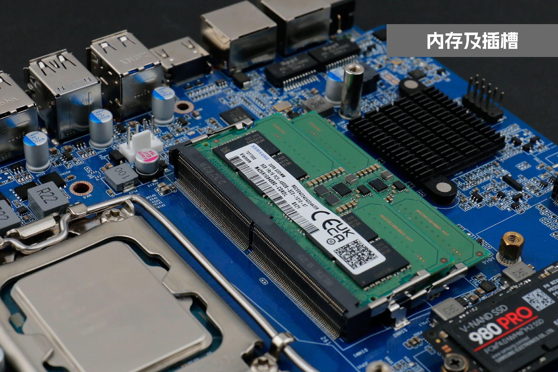 凯发官网桌面云终端Y-BOX P3主板中部是内存插槽,采用双通道笔记本内存槽设计,最大支持容量可达64GB,最高支持DDR5-5600MHz频率,比 DDR4 至高标准数据速度 3200MT/S多传输 1.75 倍,横插的形式可以减少主板的占用体积,使整体机身更紧凑,内存顶部的风扇起到高效散热的作用。
