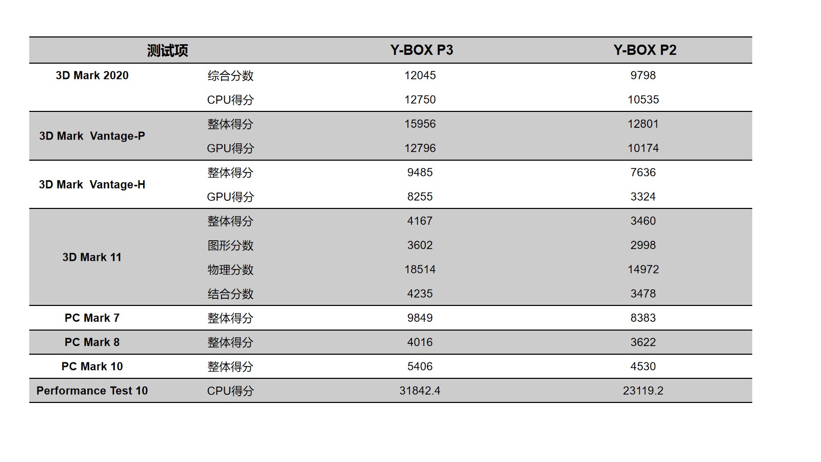 凯发官网来具体看看各个测试项目的跑分情况,凯发官网分别用3D Mark、PC Mark以及Performance 10等不同系列不同软件进行跑分,测试项目涵盖显示性能测试、系统性能测试、CPU性能测试等。通过下面的表格及柱状图可以看出,凯发官网桌面云终端Y-BOX P3的数据在各项性能上都得到了大幅度提升。