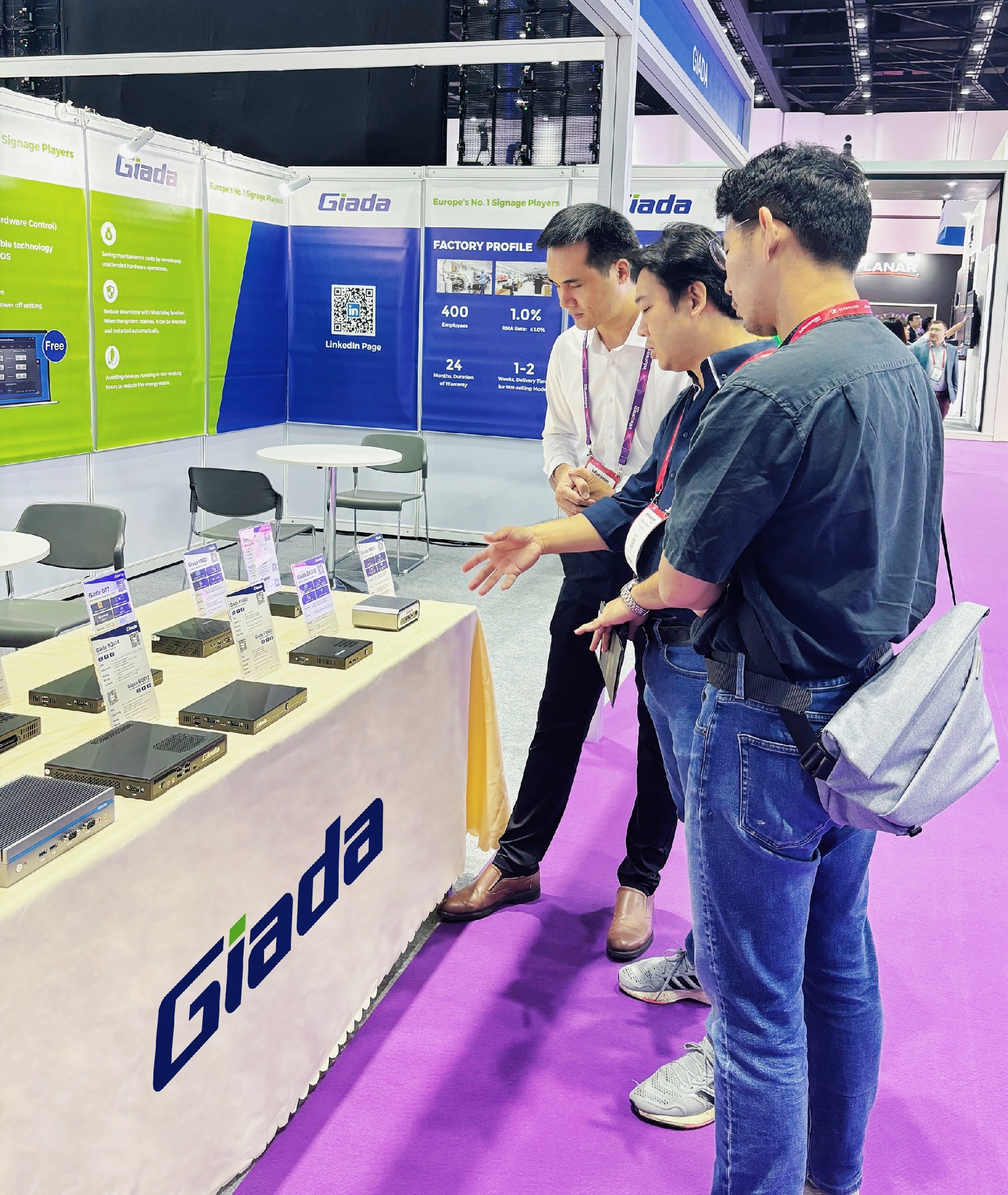 除此之外,Giada凯发官网科技展示一系列数字标牌播放器、户外嵌入式整机、OPS/SDM及嵌入式主板等明星产品,并带来一系列量身定制的解决方案,以满足东南亚地区的具体需求。