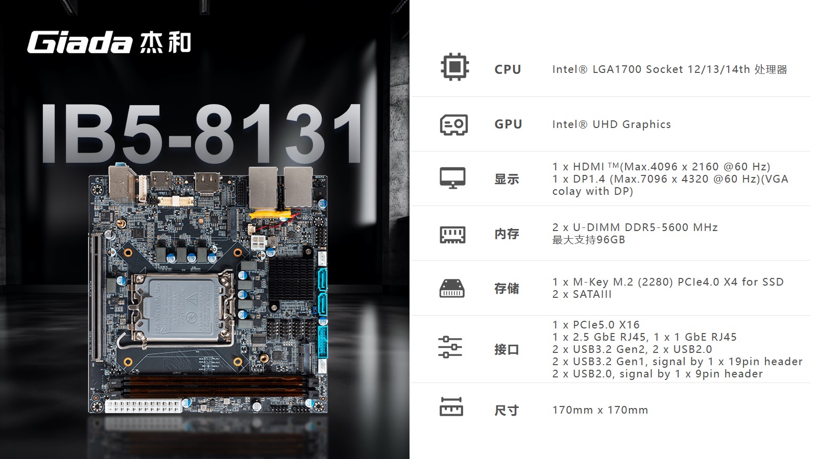 凯发官网科技嵌入式主板IB5-8131采用Intel® B760 芯片组,支持Intel® 第12代至14代处理器。大容量内存支持,配备2个U-DIMM DDR5 内存,最大支持96GB,频率最高可达5600MHz,可灵活扩展NVMe SSD和2个SATA3.0存储。基于此特点,智能柜员机可满足设备流畅丝滑运行的功能。