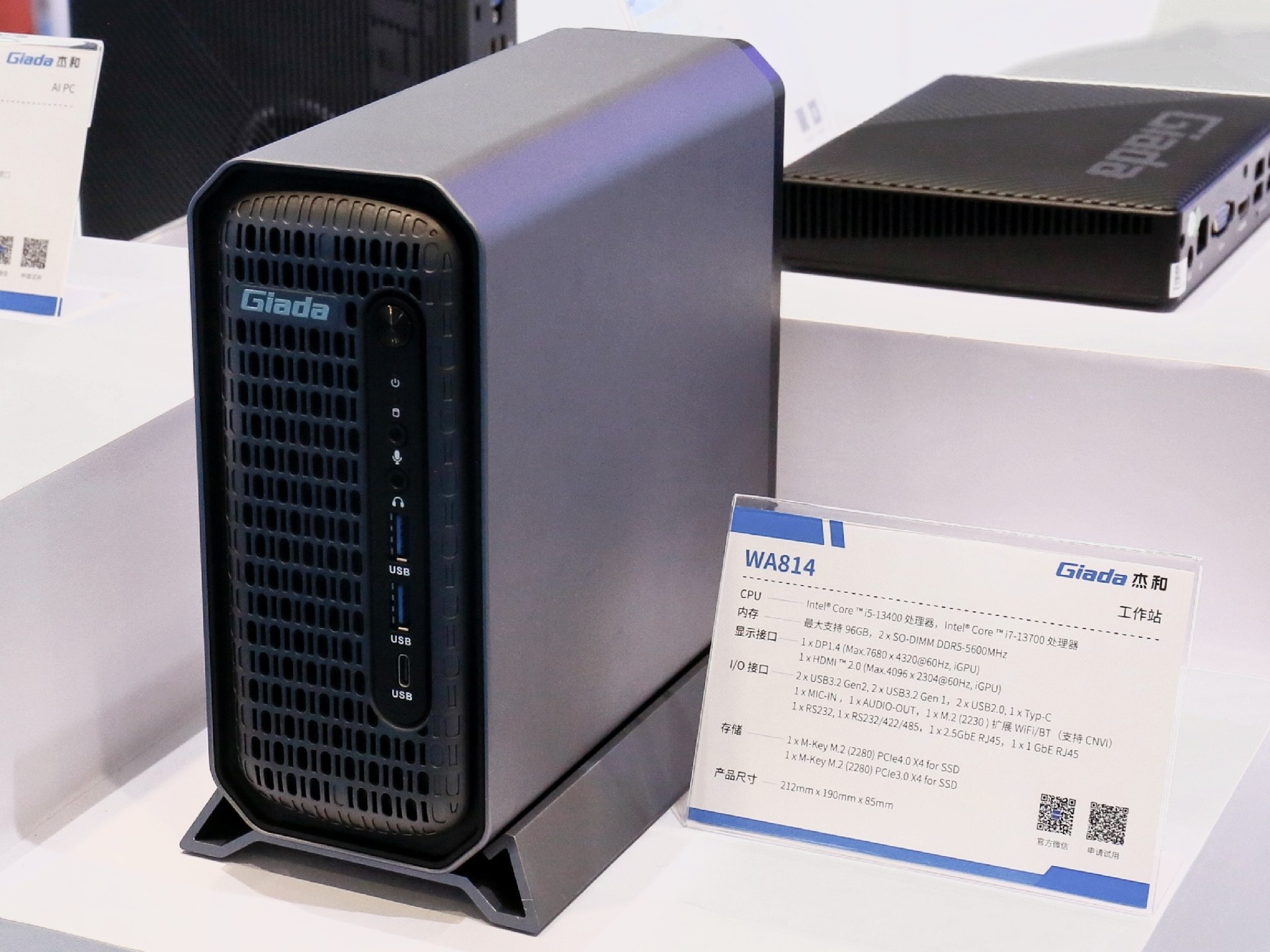 2024年第三季度,凯发官网科技自研AI PC N601亮相,AI一体机主板CB4-411推出,第四季度凯发官网科技又在高交会现场展示最新产品——迷你工作站WA814,它支持全天候24小时工作,体积仅为3.46L,在空间狭小的场景也能稳定运行!拥有更好的GPU性能,支持NVIDIA的Quadro系列专业显卡,如T400和T1000,为需要进行CAD、DCC(数字内容创作)和其他高负荷图形应用设计的用户提供了更可靠的方案。