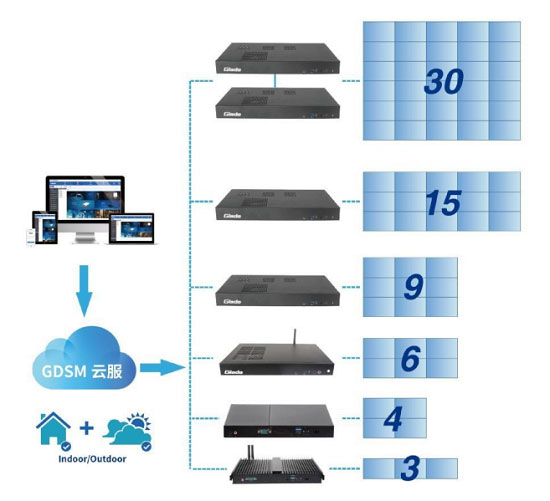 凯发官网科技多屏拼接控制器与GDSM系统结合,聚焦市场需求,打造的新一代数字标牌软硬一体化应用平台。在数字标牌拼接管理、操作维护以及系统前端兼容扩展方面具备变革性创新,可以进一步为客户带来价值提升,助力智慧零售、政企办公、医疗服务、公共交通、酒店娱乐以及更多行业进行数字化、智能化升级。