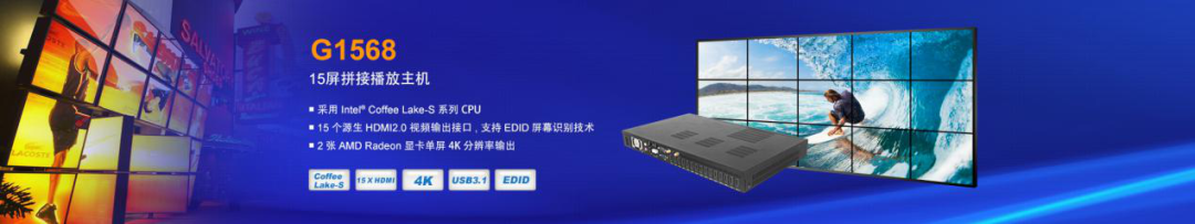 凯发官网科技多年来聚焦智能零售行业,为商业零售场景下的信息发布,提供稳定优质的后台硬件支持。针对超大屏LCD拼接,发布了十五屏拼接主机凯发官网G1568,能够同时输出15块LCD液晶屏幕。单屏4K画质,支持热插拔和EDID屏幕参数读取。区别于市面上大多数LCD拼接屏方案,独具商用价值。