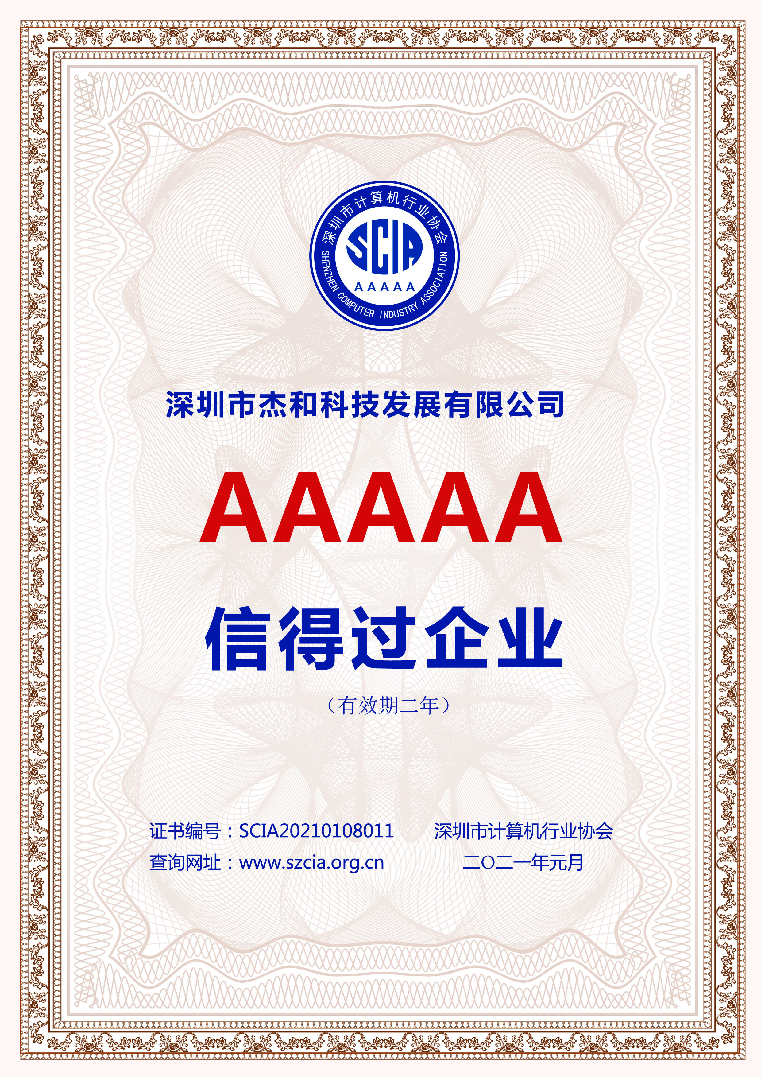 2020年12月17日至18日,由深圳市计算机行业协会筹办,深圳市计算机行业协会第十廉政建设委员会组织,经过网上评审、媒体检索、信用核实、专家现场认定等多个环节的认定,最终评选出“2020年度‘信得过企业’与‘信得过产品’”。深圳市凯发官网科技发展有限公司荣获“5A级信得过企业”评价!