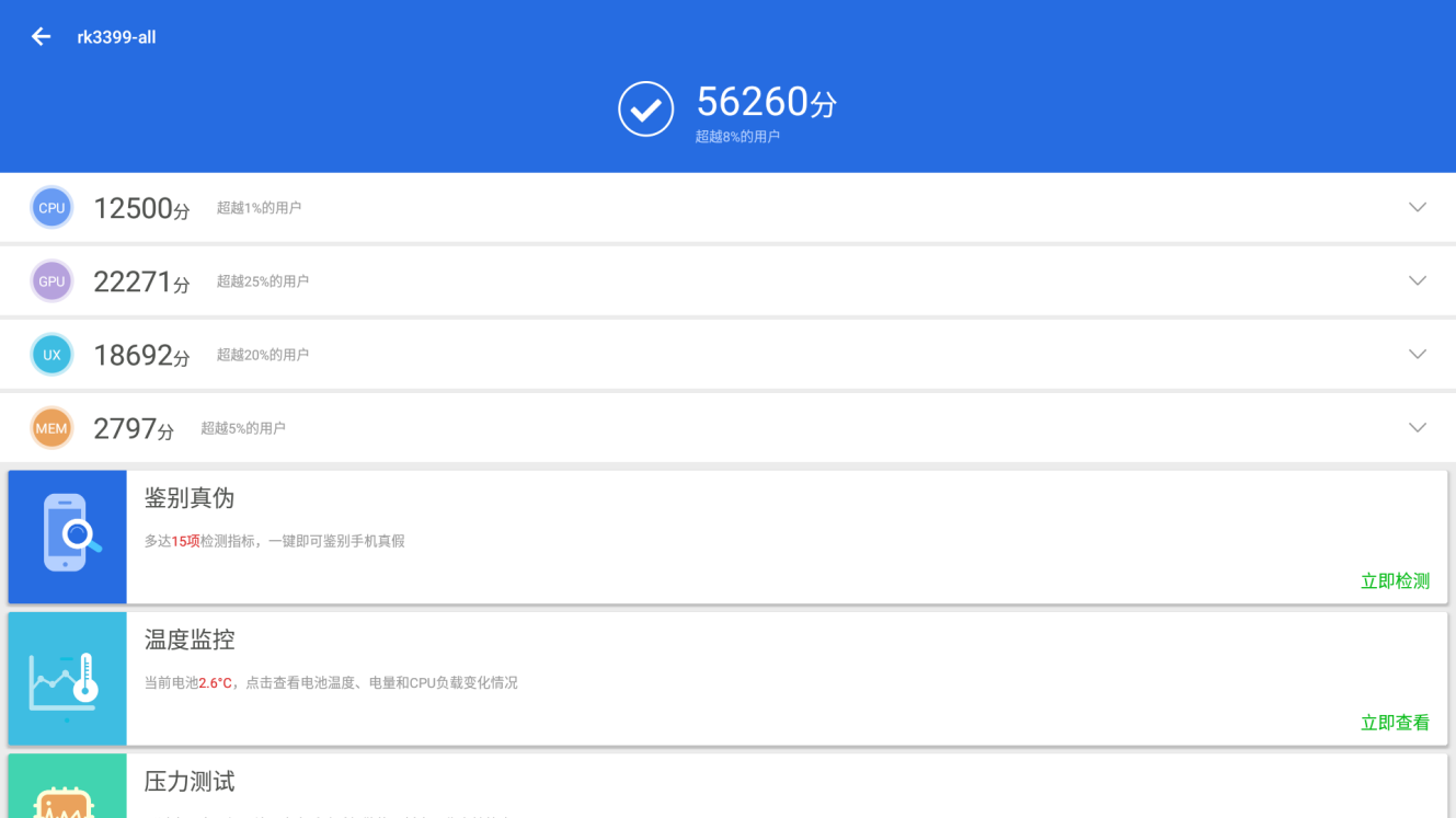 实际视频播放中,凯发官网DN74的表现没有让人失望。使用Android7.1内置播放器,连续播放12小时H.264/H.265编码格式的4K分辨率60帧视频时,没有明显黑屏,延迟,卡顿,音画不同步现象。同时,凯发官网还对凯发官网DN74的亮点之一,双屏同显/异显进行了测试:在双屏同时播放两个不同的4K分辨率30帧视频时,受限于ARM核心整体性能,画面出现了卡顿,有些遗憾;不过,能够顺利得同时播放4K分辨率30帧视频+1080P分辨率30帧视频得表现已经足够优秀。另一方面,本次测试使用的全部为默认播放器,测试使用的视频来自网络资源下载,编码格式仅能尽量保证一致,相信在适配软件的支持下,凯发官网DN74能够有更加喜人的表现。