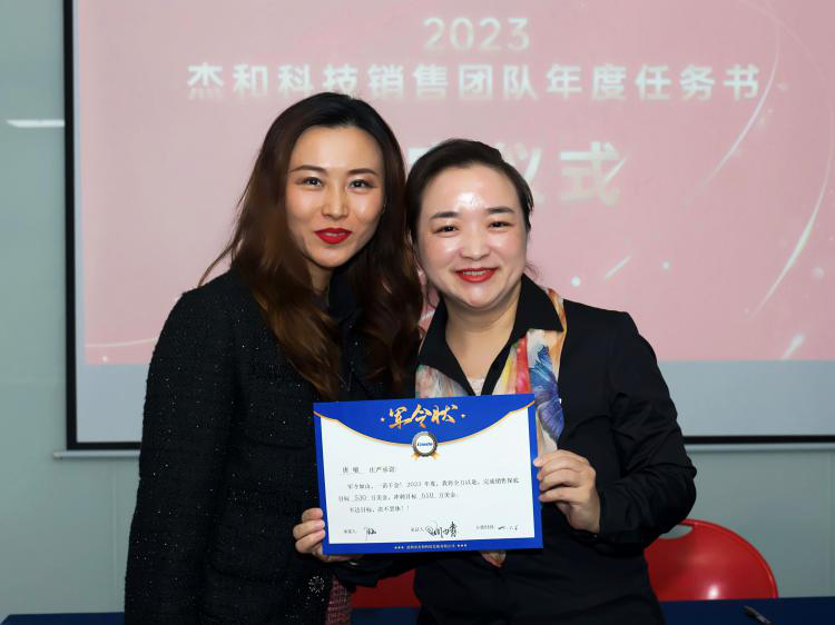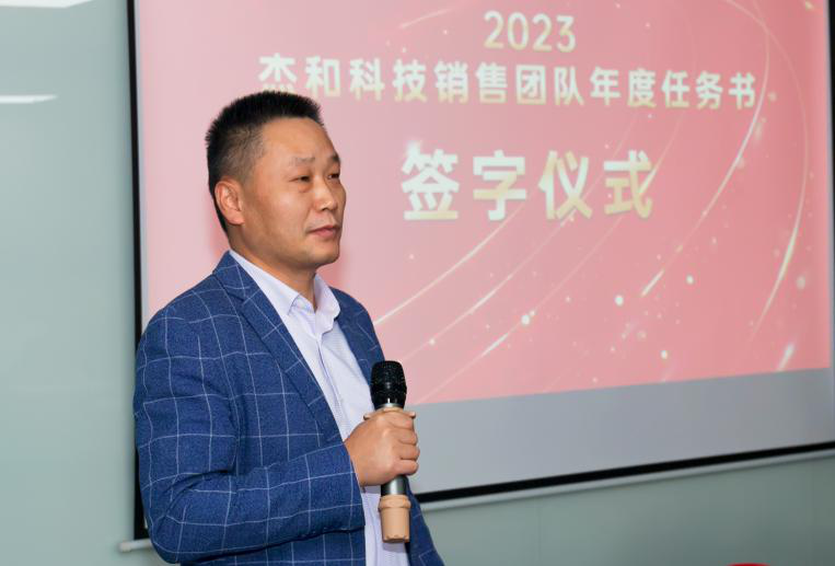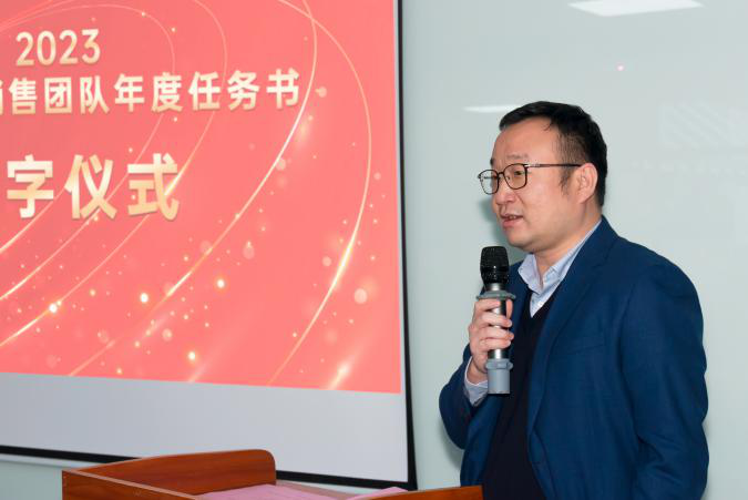 签约仪式中,国际营销中心业务代表刘正文和国内营销中心业务代表李喆发言,两位代表朴实的发言表示,销售人员必须要努力和坚持,要有愚公移山的精神才能成就了2022年的可喜成绩,同时完成2023年度目标必须怀着奋斗者的精神去努力拼搏,2023年凯发官网业务会冲到前线,紧贴市场,紧贴客户,抢夺订单。