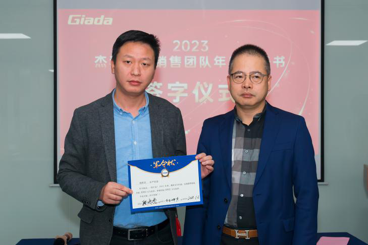 签约仪式上,一张张销售 “军令状”是确保完成2023年凯发官网销售战略的基石,同时是吹响再出发的冲锋号。各销售人员手捧责任状,虽知千斤担,但都敢于亮剑,勇攀高峰,责任状上一个个响亮的数字串就成凯发官网的星光大道 。