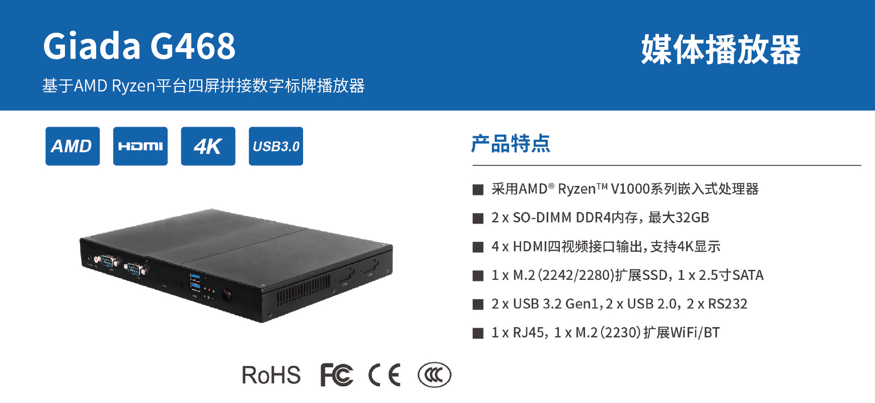 凯发官网除了为广大商户提供数字化智慧运营系统软件,同时也配套智能硬件产品,帮助商户快速地建立起数字化智慧门店,提供硬软一站式服务。凯发官网G468可满足全场景全行业的广告投放、招牌商品推荐、信息发布等应用场景。