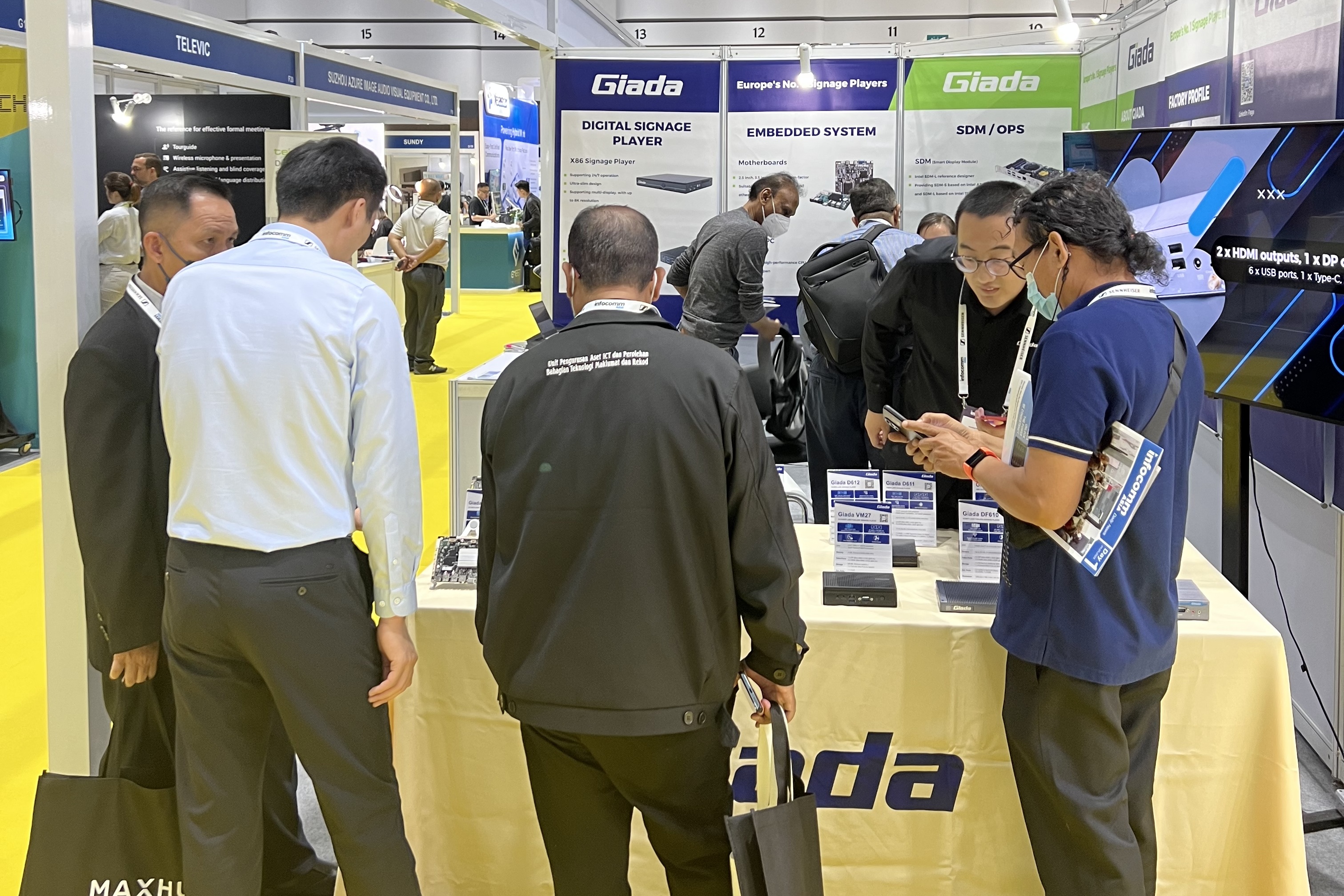 此次InfoCommAsia 2023展会,Giada凯发官网科技携最新产品及方案亮相。致力于为全球企业客户解决智能化应用需求的凯发官网,此次展会带来了数字标牌播放器、边缘计算机、OPS/SDM和嵌入式主板等的最新产品,并展示了一系列量身定制的解决方案,以满足泰国市场的具体需求,为亚太地区的数字化转型带来全新势能。展会期间,Giada的展台现场气氛火爆,展位人流络绎不绝!