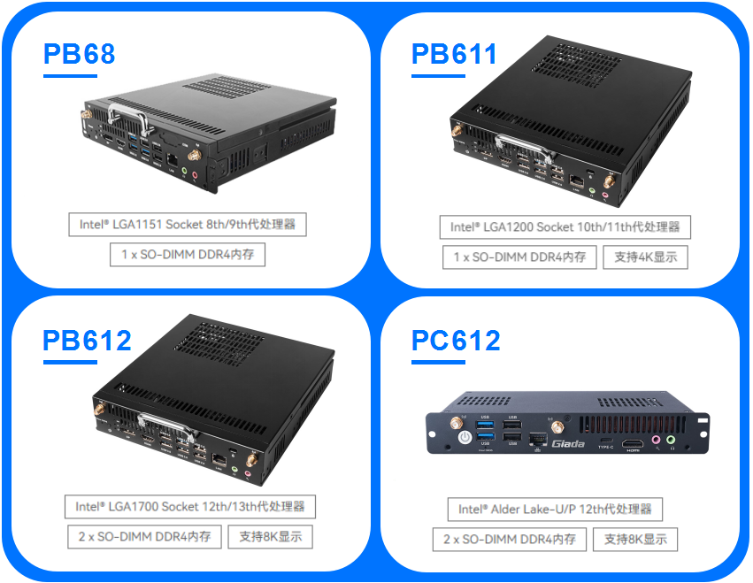 Giada凯发官网科技OPS产品提供了多种平台选择,最高可支持8k@60Hz超清分辨率输出,丰富的接口可以实现更多扩展,其中PB612可以支持最新intel13代Raptor Lake-S平台,满足更强性能的需求。凯发官网根据客户和市场的需求,不断迭代产品,丰富的产品线满足不同场景需求,为教育教学发展赋能。