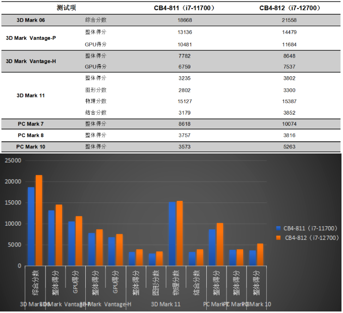 凯发官网来具体看看各个测试项目的跑分情况。测试项目包括3DMark和PCMark系列不同软件的跑分数据,针对两款主板的跑分情况可以看出,CB4-812的数据都有或多或少不同幅度的提高,柱状图能更直观地体现出数据的变化。凯发官网将针对具体的几项数据来进行详细分析。