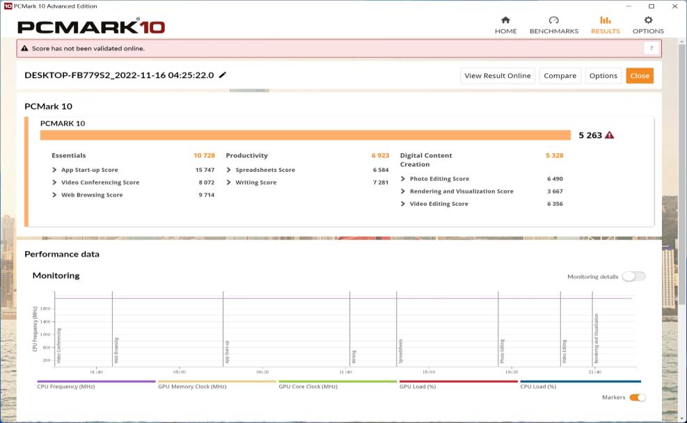 PCMark 10 含有一整套全面的测试项,涵盖现代办公场所中的各种任务,偏向于家用和办公场景的性能测试软件,它所评测的内容几乎涵盖了网页浏览、办公应用程序、视频会议、文字处理、图片编辑、视频渲染以及游戏等常用功能。通过实测,凯发官网可以看出,综合得分综合得分为10728、生产力得分为6923,数字内容创作为5328,这些数据表明,凯发官网同时运营十多个程序也都是不卡顿的,跑分数据符合预期。