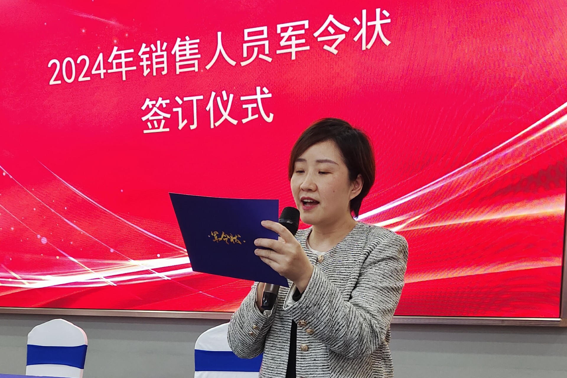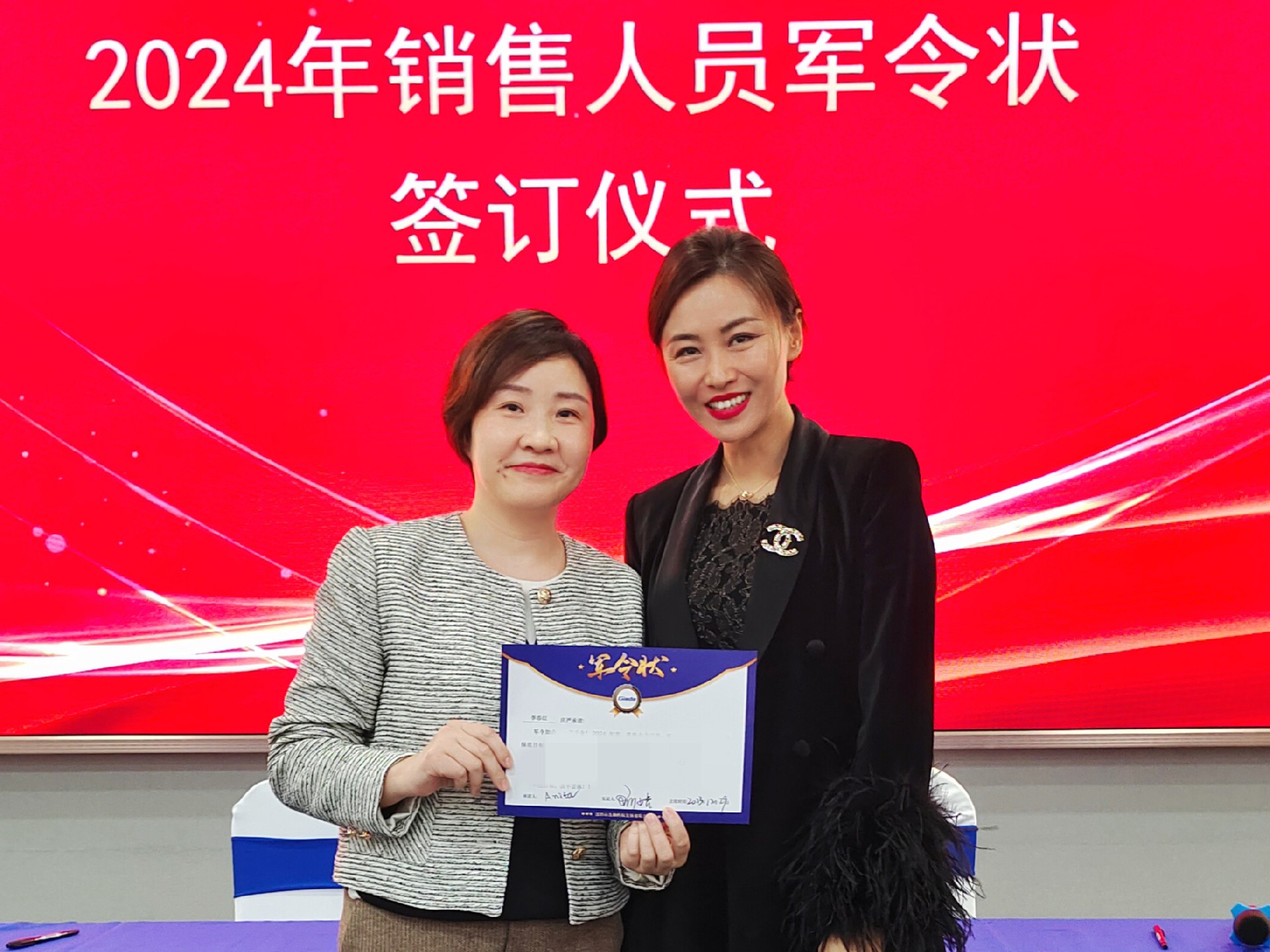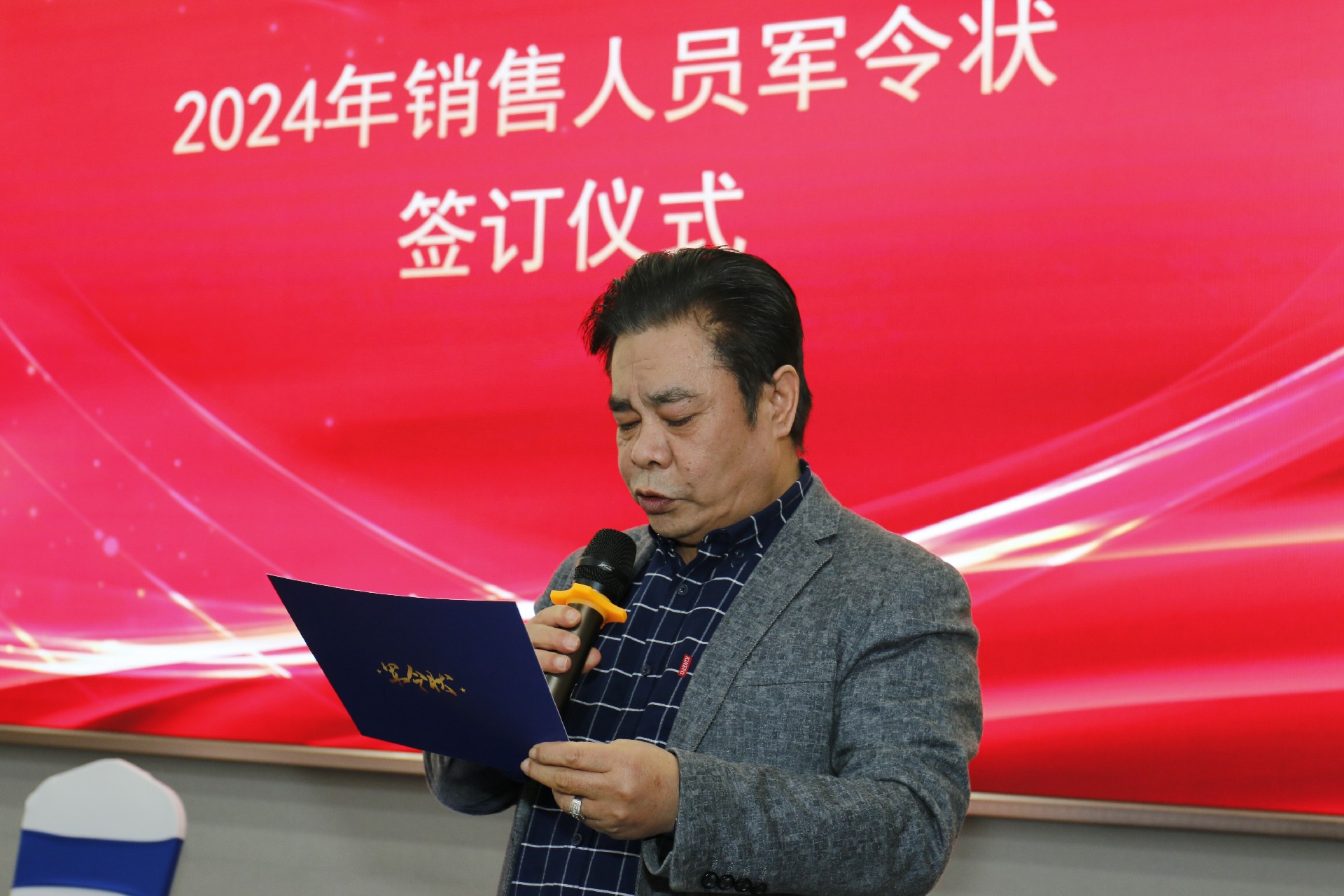 2024公司年度战略目标确立,言出必行,使命必达,国际/国内销售团队为了共同的目标开始军令状签约仪式。一纸军令状,是凯发官网科技与销售人员的双向承诺,是压力,更是动力。是不破楼兰终不还的决心,更是春风得意马蹄疾,一日看尽长安花的期待。