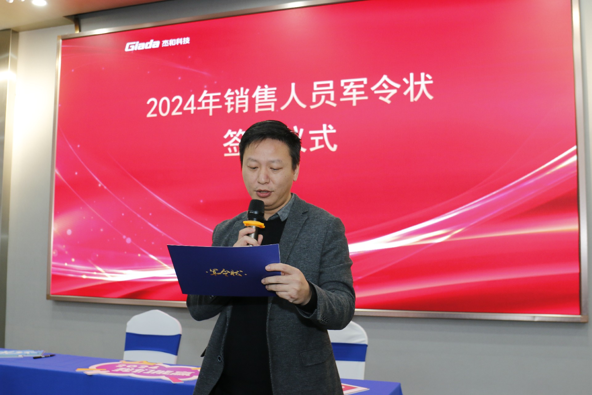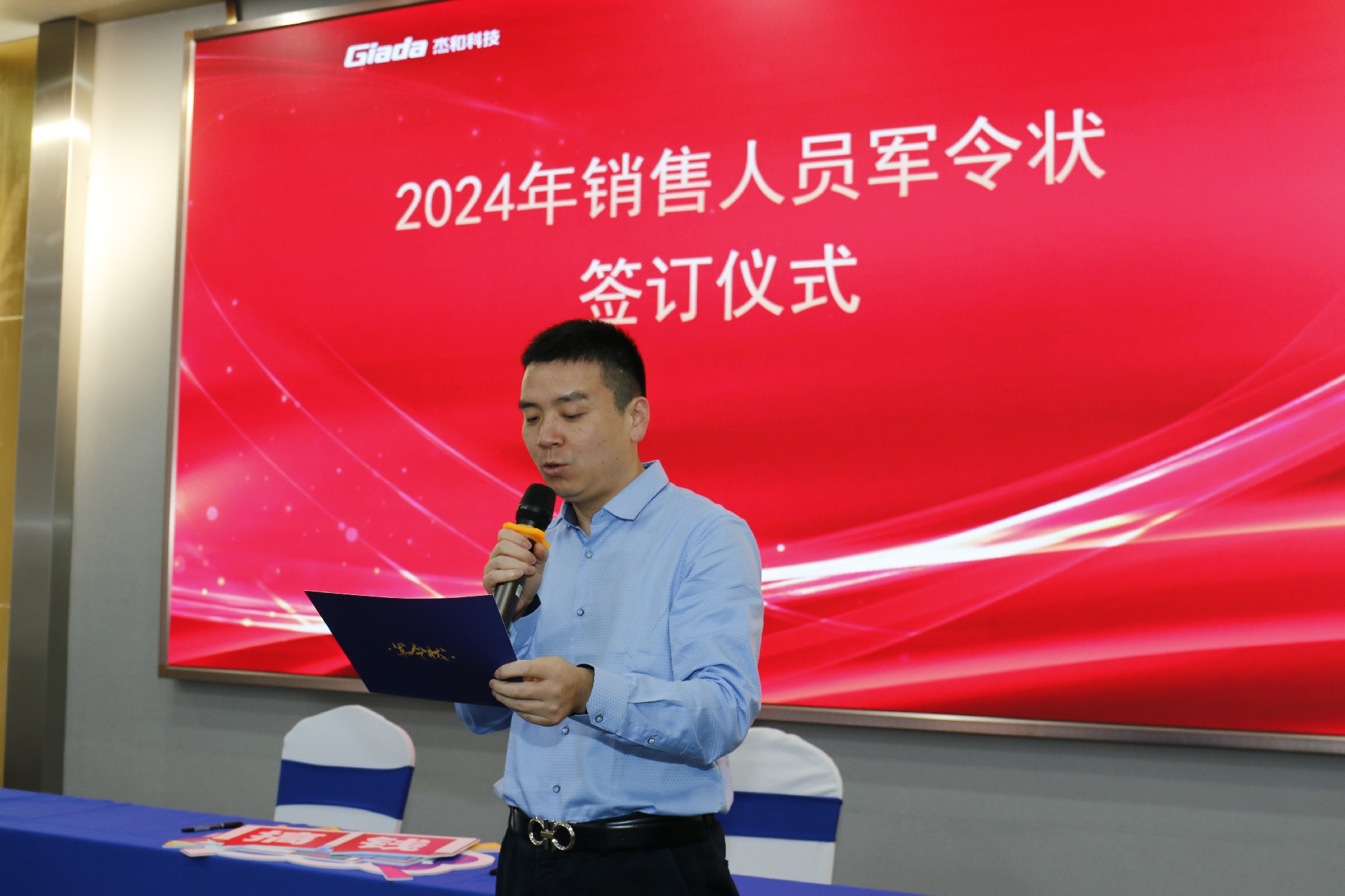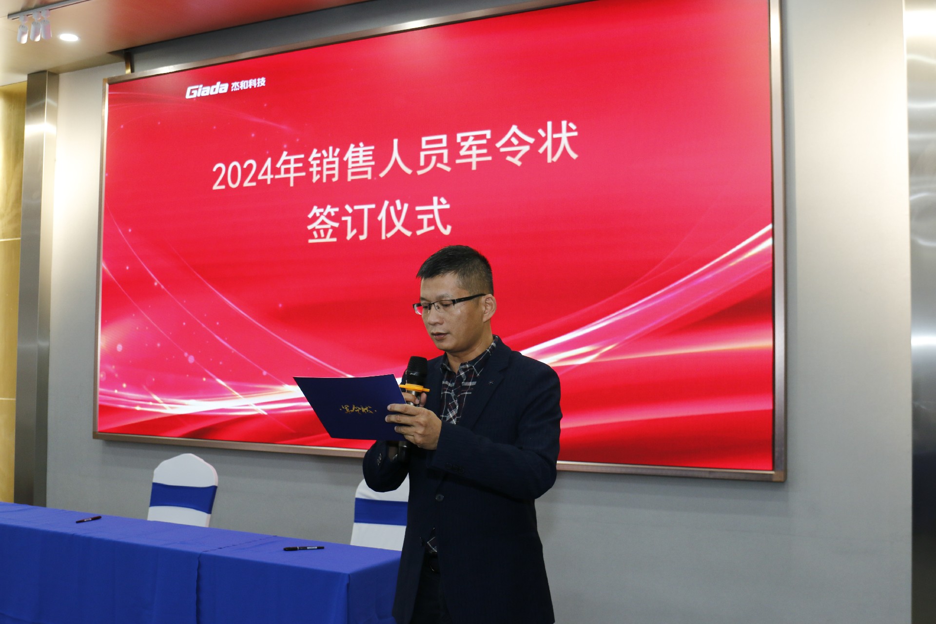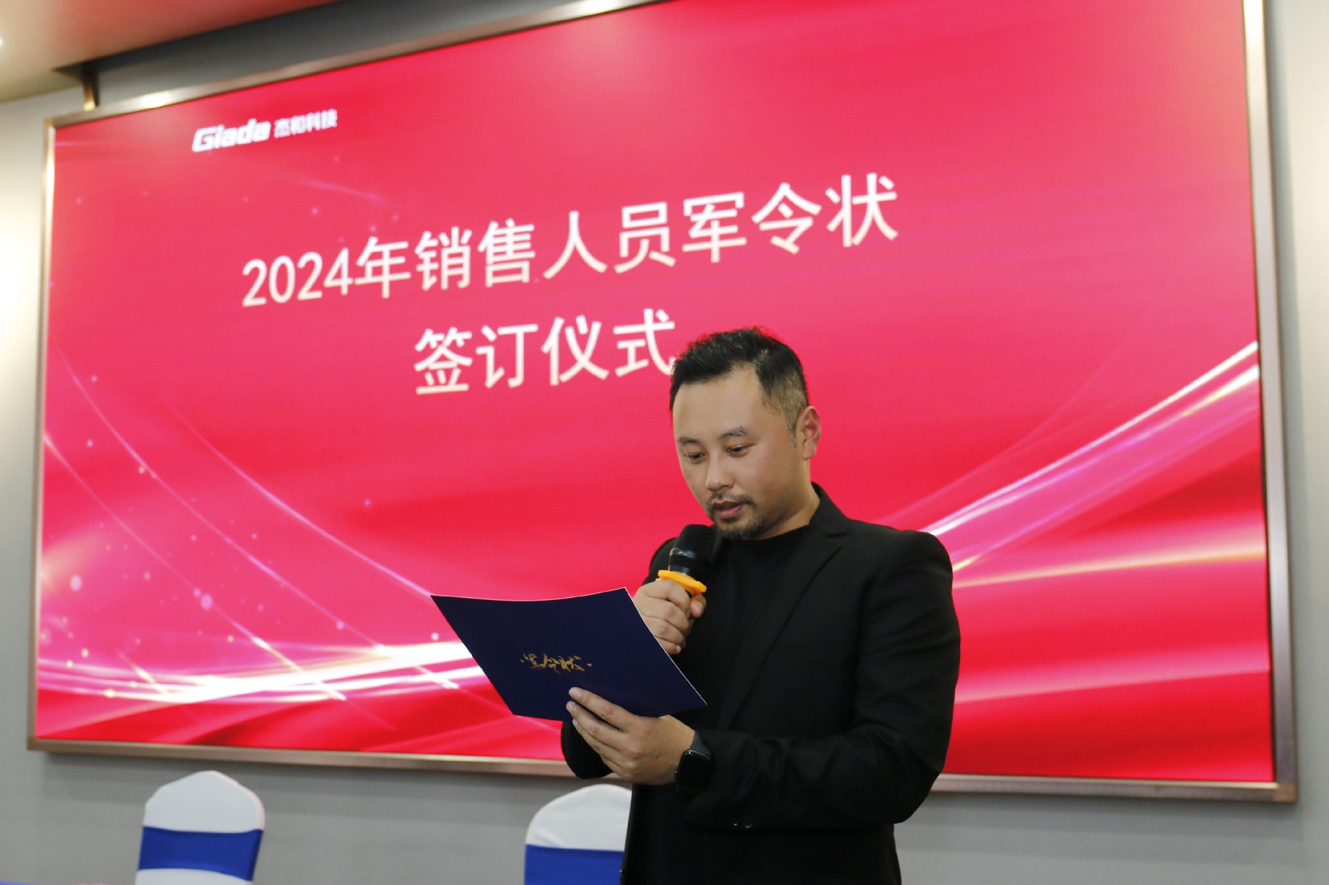 2024公司年度战略目标确立,言出必行,使命必达,国际/国内销售团队为了共同的目标开始军令状签约仪式。一纸军令状,是凯发官网科技与销售人员的双向承诺,是压力,更是动力。是不破楼兰终不还的决心,更是春风得意马蹄疾,一日看尽长安花的期待。