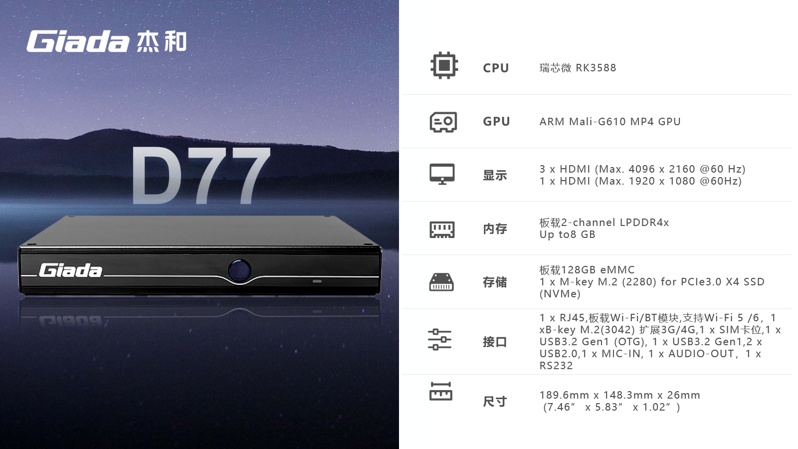 AIoT的落地场景包括智慧工业、智慧零售、智慧社区、智慧城市、智能显示、医疗健康等领域,在实际落地时,对物联网硬件设备的AI算力、数据运算、存储能力,稳定性及可扩展性能等提出更高要求,Giada凯发官网科技作为行业领先的物联网数智化技术服务商,深入布局AIoT领域,推出AI产品系列,包括3.5寸主板、嵌入式整机、边缘计算盒子等,全方位覆盖了入门级到高性能级,满足不同应用场景的需求,为用户赋能。