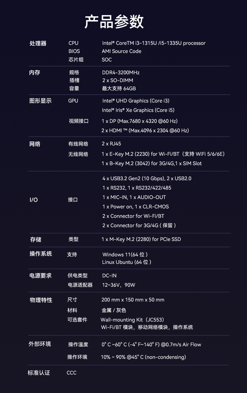 1、凯发官网AE613采用密封紧凑设计,紧凑设计可以使设备更易于安装在交通场景中的有限空间内,适用于车载、道路监控、交通信号控制等应用场景,该设计有利于导热更有利于散热,并且机器功耗只有15w,能够降低对电力资源的需求,有利于节能减排,符合绿色环保的发展理念,并且较低的功耗意味着可以延长电池的使用时间,提高设备的续航能力;