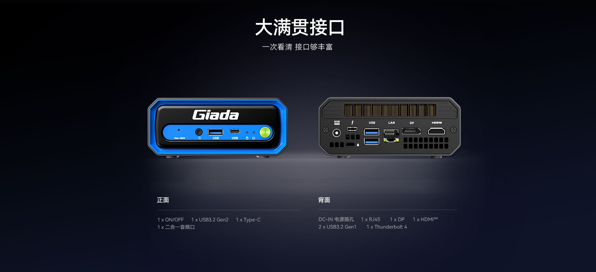 1 x Thunderbolt 4,1 x USB Type-C3.2 Gen2