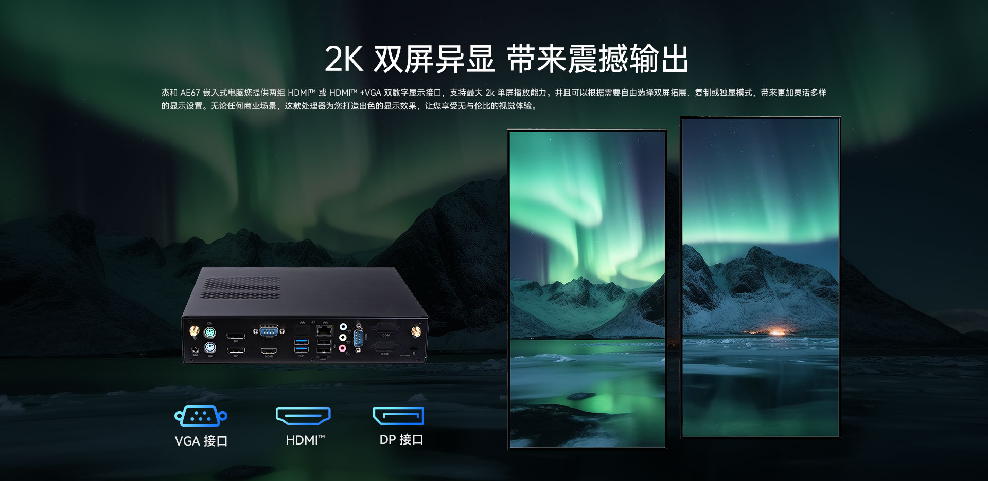 提供HDMI+VGA双显示接口输出